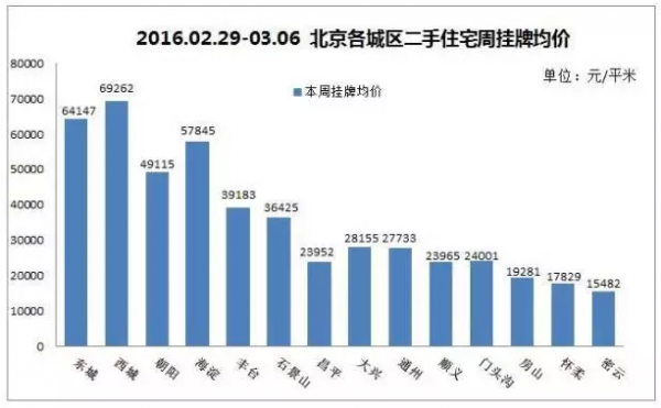 2016年2月北京各区县市住宅房价排行榜(前10)