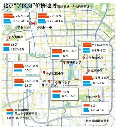 实际上,学区房更是水涨船高!2016年北京重点小学学区房概况