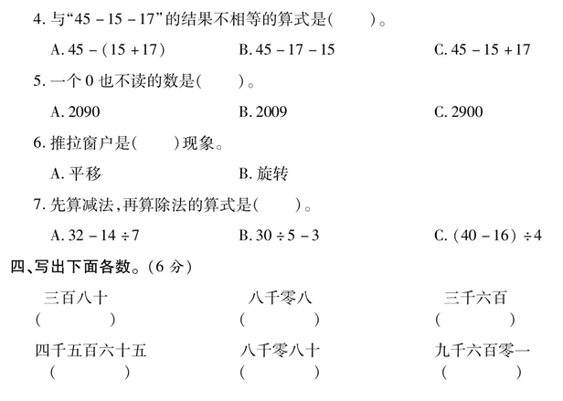 2020年人教版二年级下册数学期末测试卷五十一(图片版)