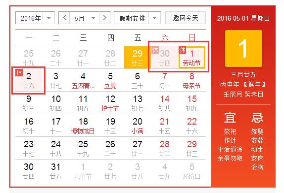 来源 : 网络 04月29日 14:24 关键字 : 2016五一放假安排 五一放假安排时间表