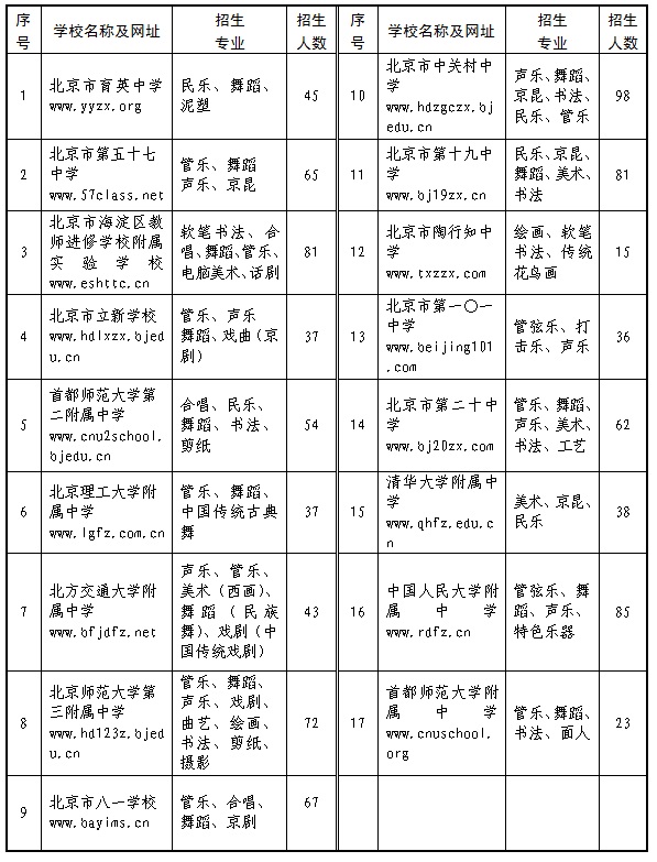 海淀区教委官方发布海淀区2015小升初艺术特长生招生计划,共涉及17说中学,人大附中、首师大附中、101中学等关注度较高中学依然在列。