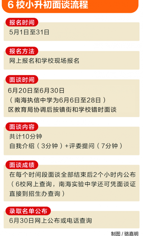 佛山市超盈实验中学 2015年初一新生拟招18个班,每班35人,共630人。(含5%狮山镇户籍学生) 报名时间:2015年5月1日至5月31日 面谈时间:2015年6月20日至6月30日 面谈方式:...